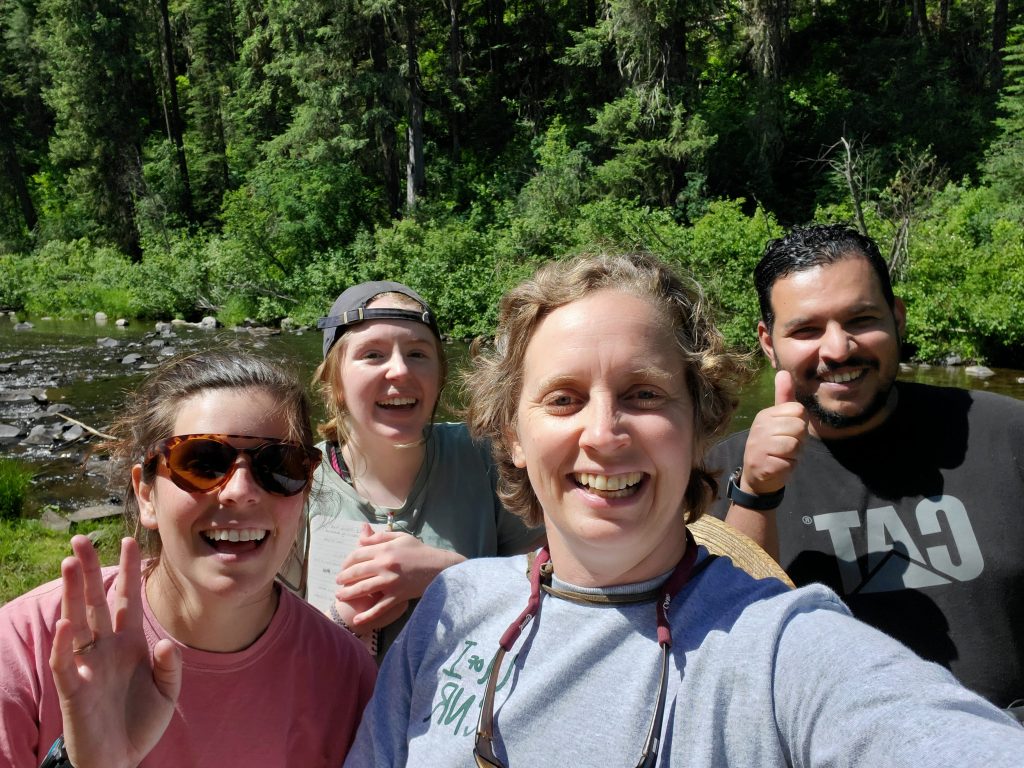 For the first signal crayfish sampling trip, the team traveled to Little Boulder Campground by the Potlach River, a few minutes outside of Deary, ID. They spent time determining the exact sampling, recording, and labeling methods they would use for the rest of the field season. Out of the two sampling sites on the Potlach River, the team initially caught only a handful of signal crayfish, which are characterized by distinct turquoise/white patches at the base of their claws. So, they decided to set up some crayfish traps to be collected the next day.